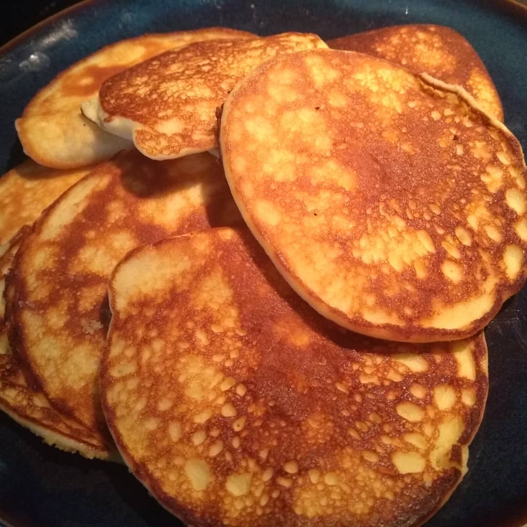 Blender pancakes, just like how it sounds – blend cream cheese, eggs, and coconut flour (or sub with almond flour or psyllium husk), sweetener, and vanilla. Pour batter into piping hot, greased skillet and make pancakes as normal. Our favorite blender pancake recipe so far can be found at Low Carb with Jennifer.