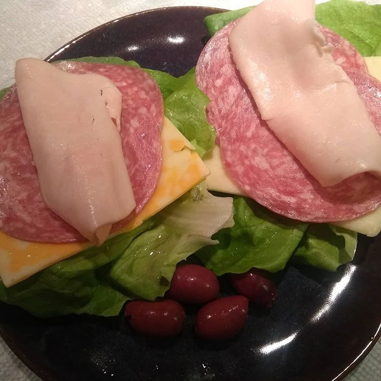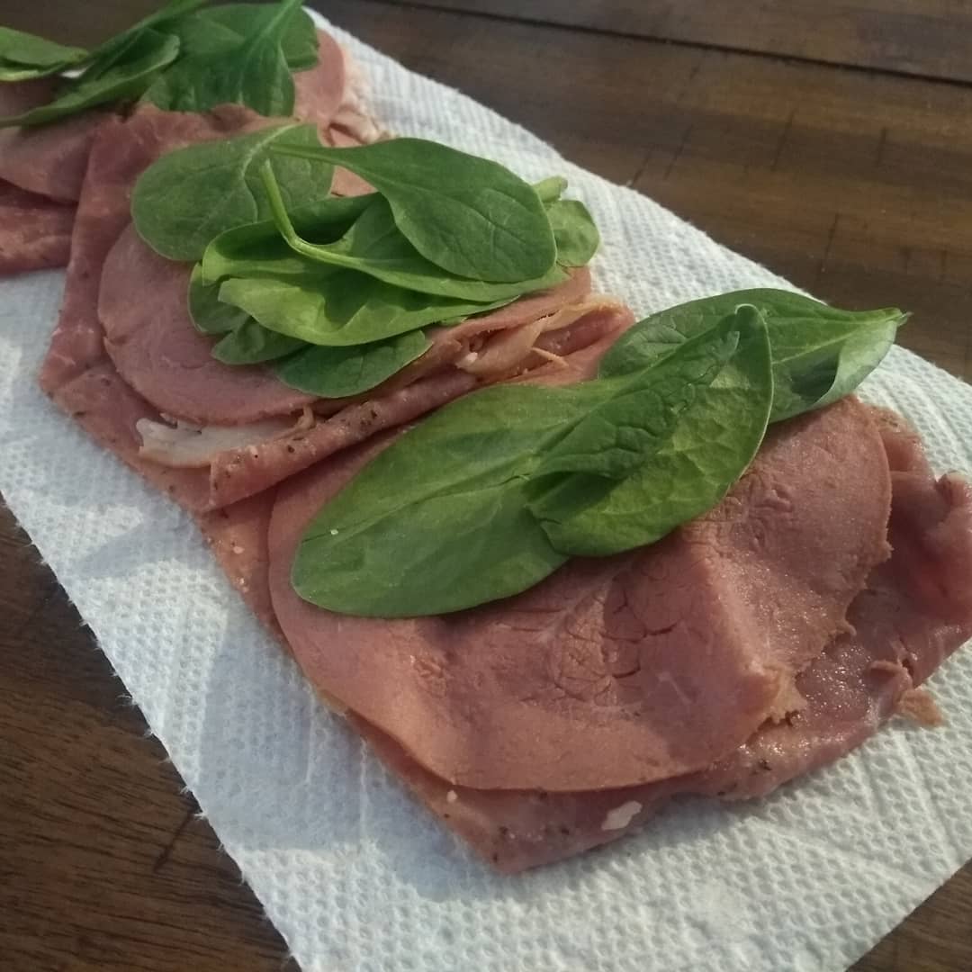 Breadless sandwich – example: natural cold cuts with greens, side of crispy cheese chips or pork rinds