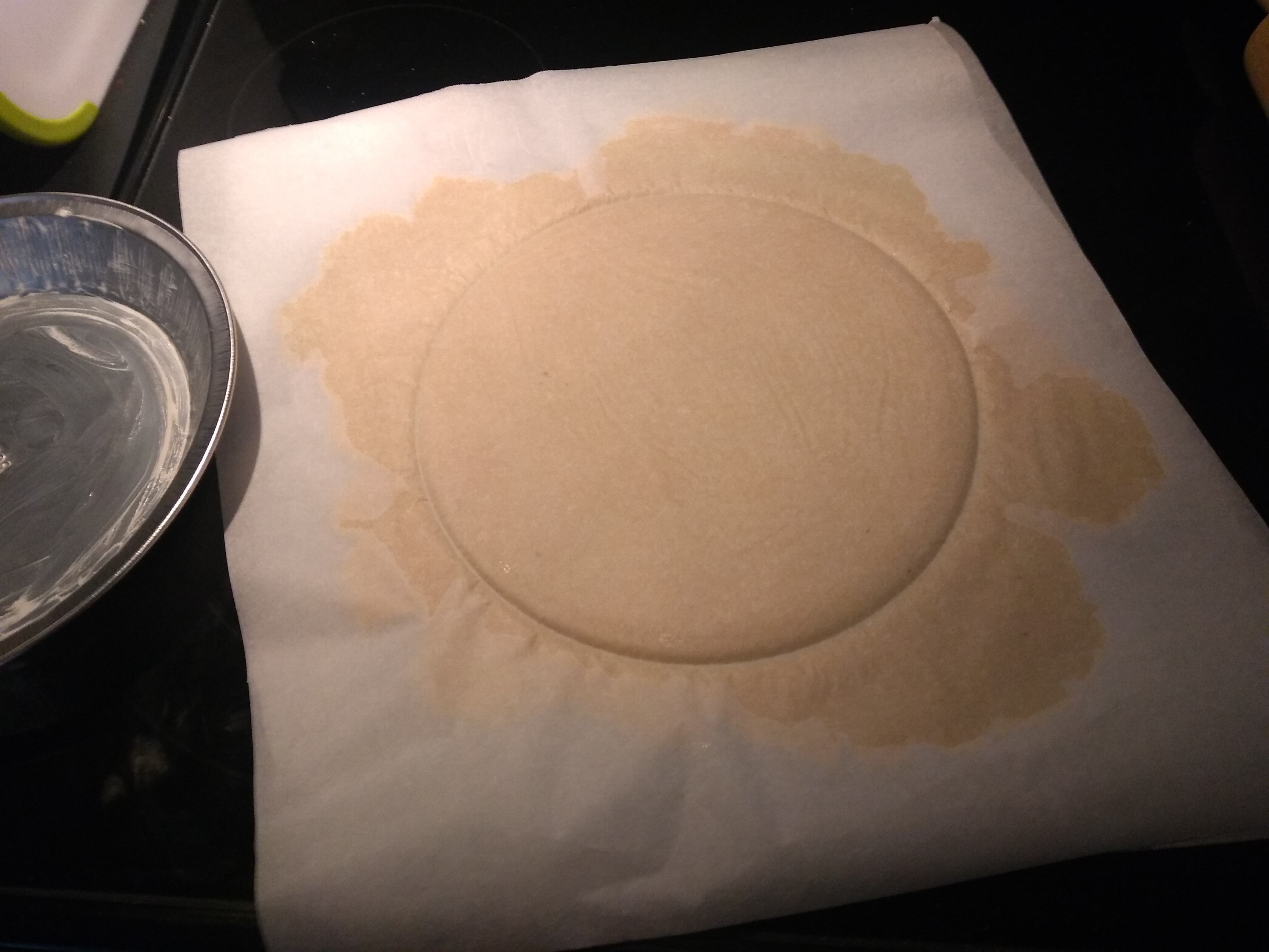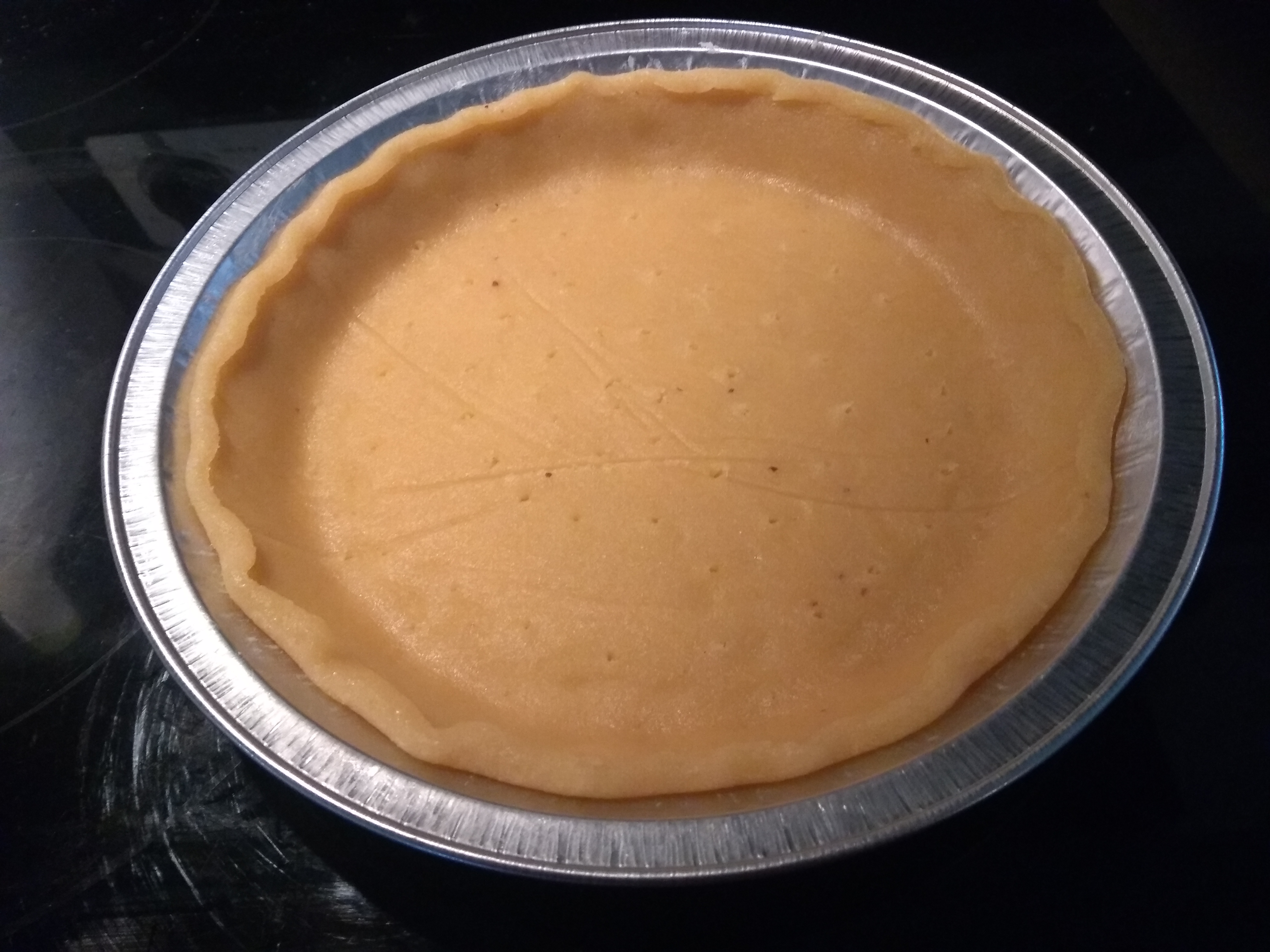 1. Preheat oven to 365° f and grease a pie pan.