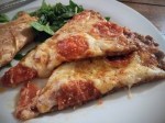There’s a very simple option: just eat the toppings, including cheese, and ditch the crust. Some restaurants will go ahead and do this for you by special request, baking all toppings in a small dish. That’s not always possible though. My husband sees the sad, bare crust sitting there untouched as wasteful and wants so very badly to finish my plate, and I understand this completely.