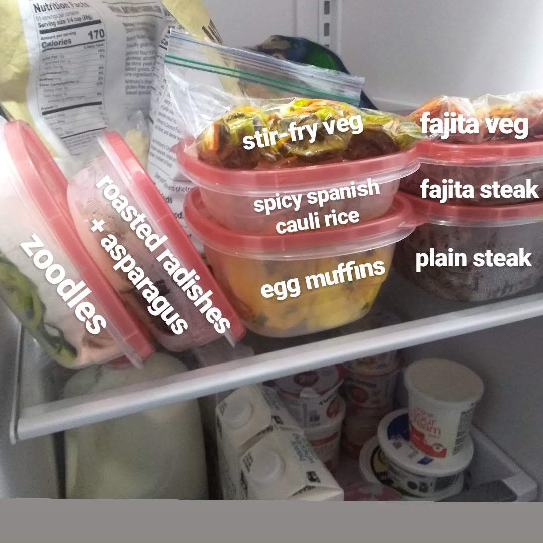 In my case, I only prep a little nowadays. You don’t actually need to prepare ENTIRE meals for every single day of the week. It can be as simple as making sure some raw meat is cooked or thawed and some vegetables are sliced/diced/noodled beforehand. Some can be stored in the fridge, others in the freezer. Then you can easily pull out whatever you need or want for lunch or dinner. The times we do any prep like this, it allows us to easily build meals around whatever taste we have that day – some chopped spring onion here, some sliced bell pepper there, etc.