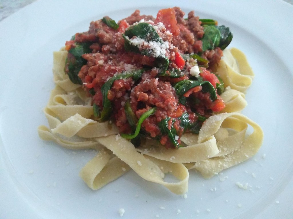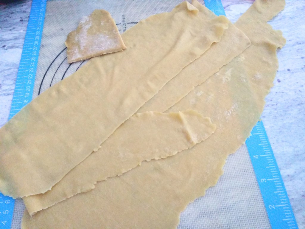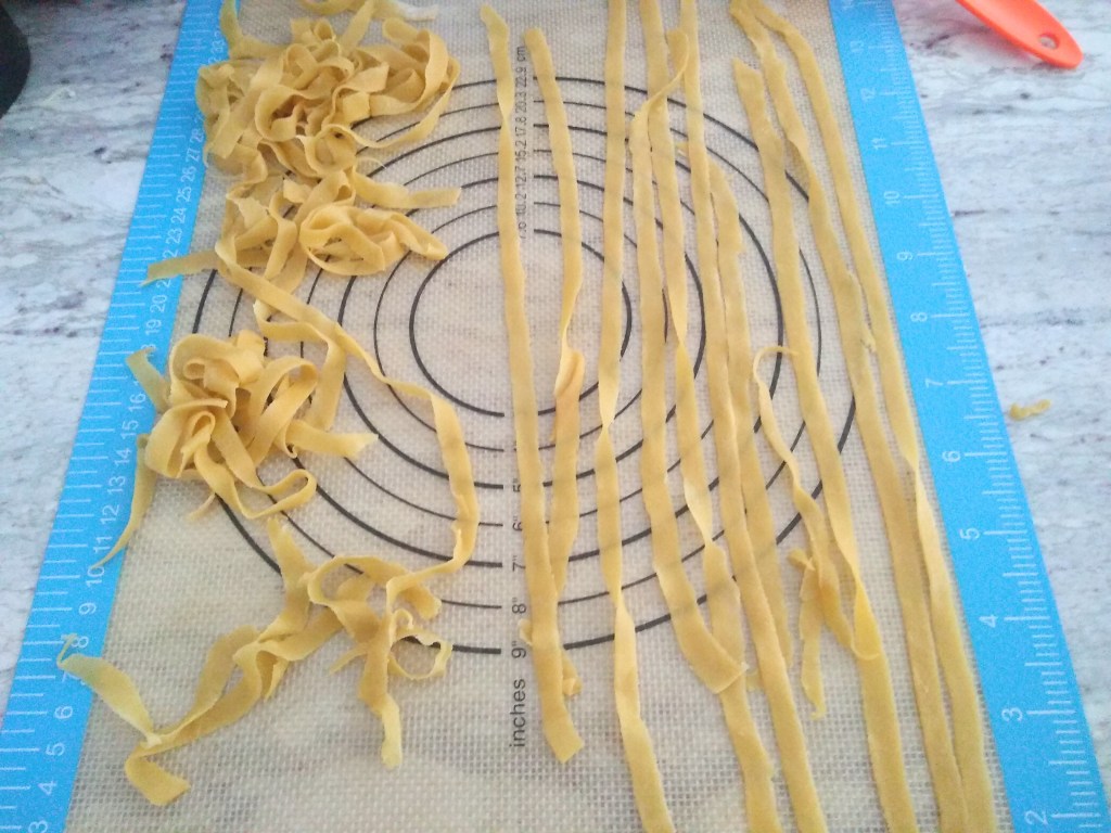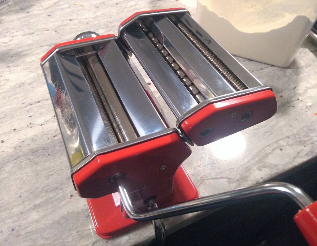 We’ve tried a lot of different pastas and pasta recipes – you can check out one of our older posts on Pasta over here to see some of those adventures. This week is the first time we actually had the chance to use a pasta machine to make something and it was kinda fun. But as we said before, despite the simplicity of the recipes, it’s still a labor of love – especially rolling the dough and dividing the individual strands. EVEN IF you have a basic machine to help with this, the process IMO was a bit tedious.